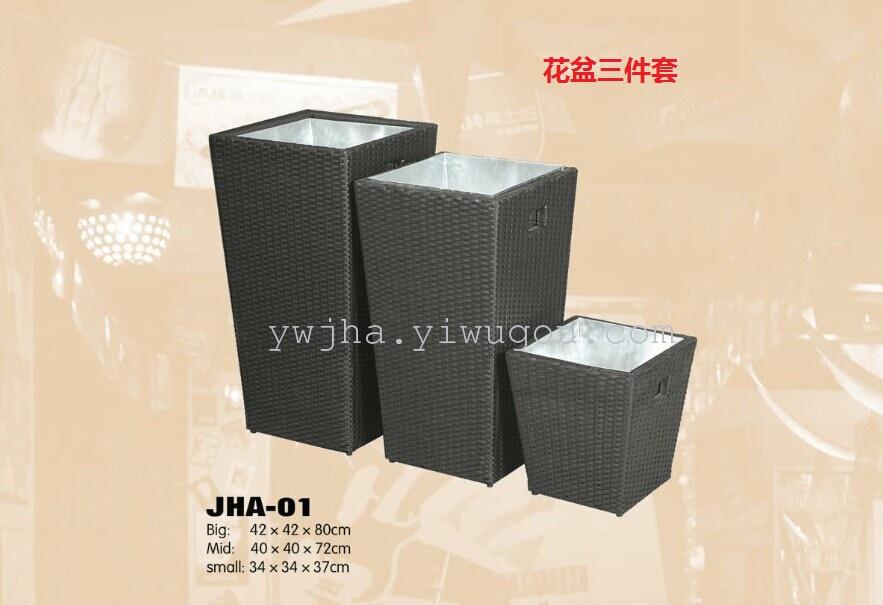 户外休闲花盆三件套 花瓶 藤艺花盆