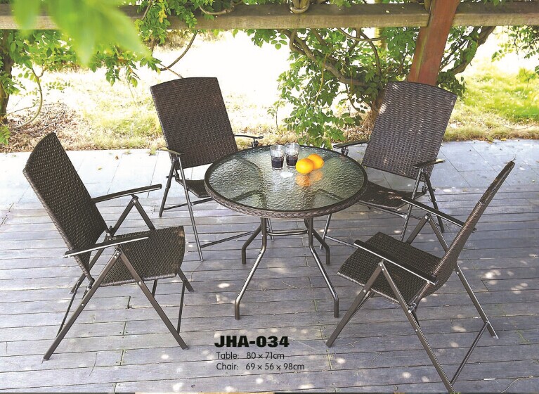 户外休闲藤编桌椅 折叠椅+玻璃桌 花园庭院桌椅组合 带伞孔