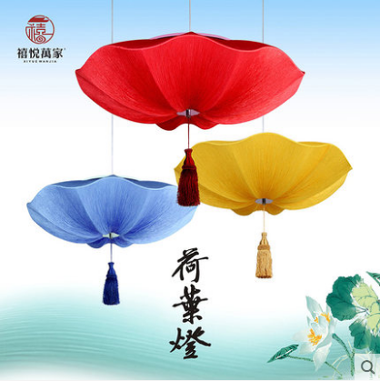 古典荷花荷叶灯具新中式火锅店茶餐厅灯婚庆布艺仿古飞碟吊灯灯笼
