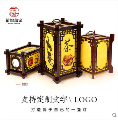 中式阳台小吊灯茶楼餐厅民宿农家乐定做木宫灯仿羊皮LED广告灯笼