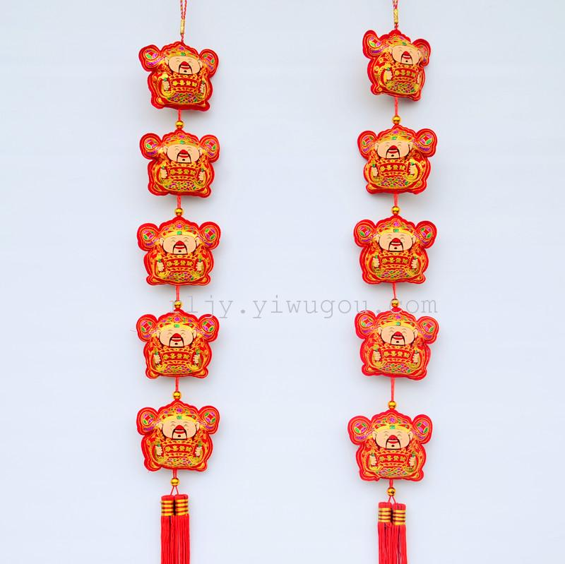 5个财神爷串 中国结挂件 端午中秋国庆春节挂件 绒布烫金工艺