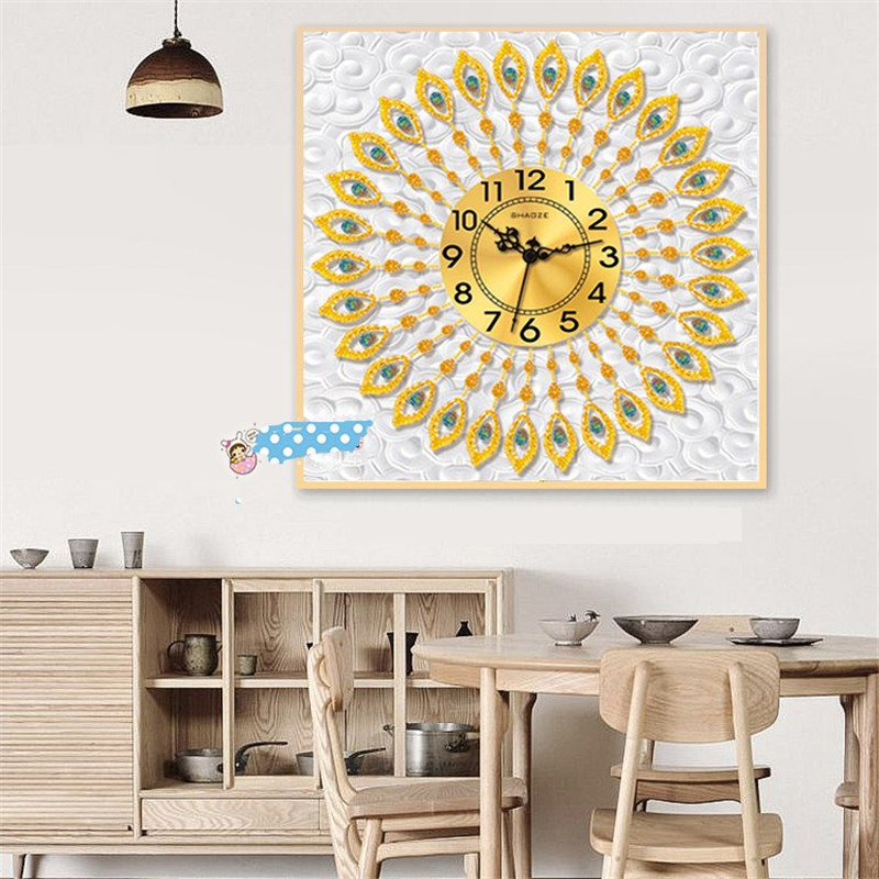 新款5d钻石画孔雀钟表贴钻十字绣现代简约客厅时钟挂画异形钻