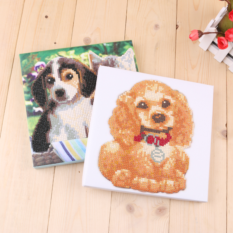 欧美橙圆钻魔方钻十字绣砖石画 粘钻石绣满钻猫狗动物装饰画