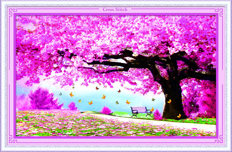 新款5D浪漫樱花树钻石画风景十字绣客厅装饰