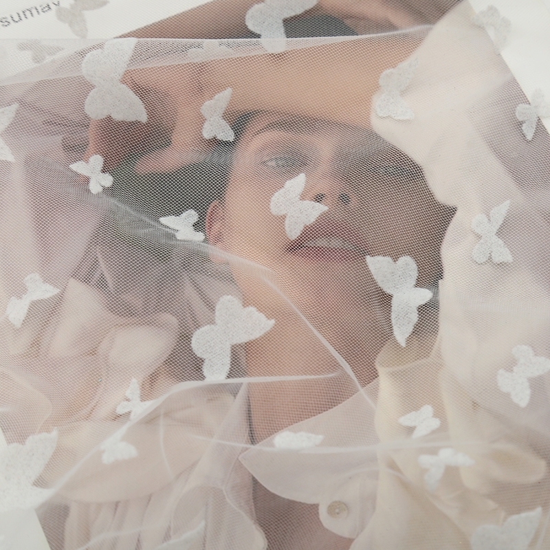 黑白超仙植绒花型软网纱加密细腻蕾丝纱连衣裙半身裙服装布料面料