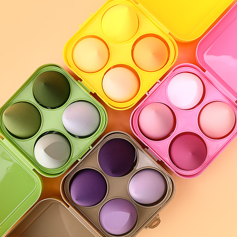 四格彩盒装美妆蛋粉扑批发 粉扑干湿两用 化妆海绵蛋 收纳盒