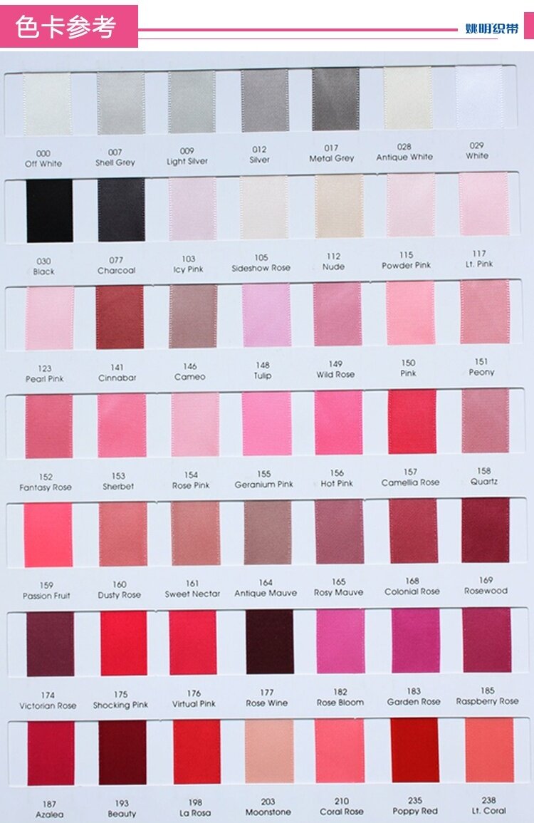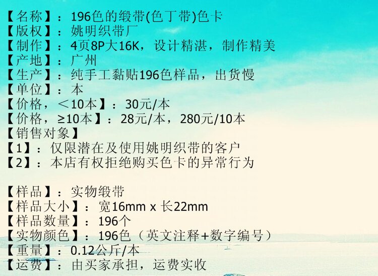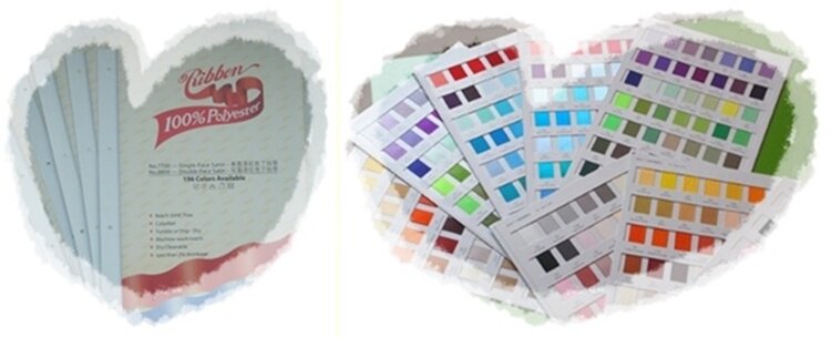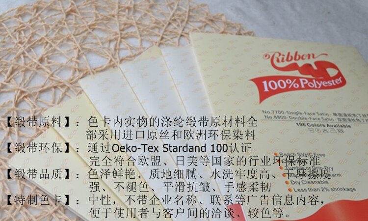196色涤纶色卡展开的内页4P,其色卡上的实物样品是涤纶料的色丁带,单个样品宽度是16mm
