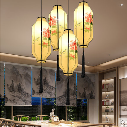 中式布艺手绘灯笼仿古典宫灯餐厅茶楼过道创意冬瓜长形布艺吊灯具