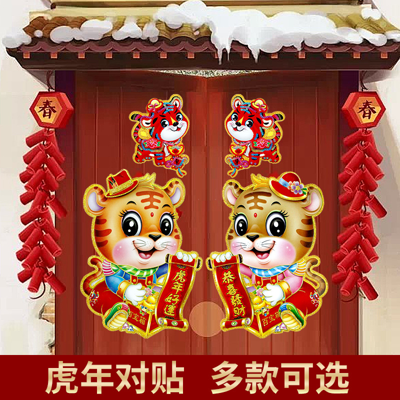2022虎年福字生肖门贴对贴植绒立体撒金烫金春节新年装饰批发