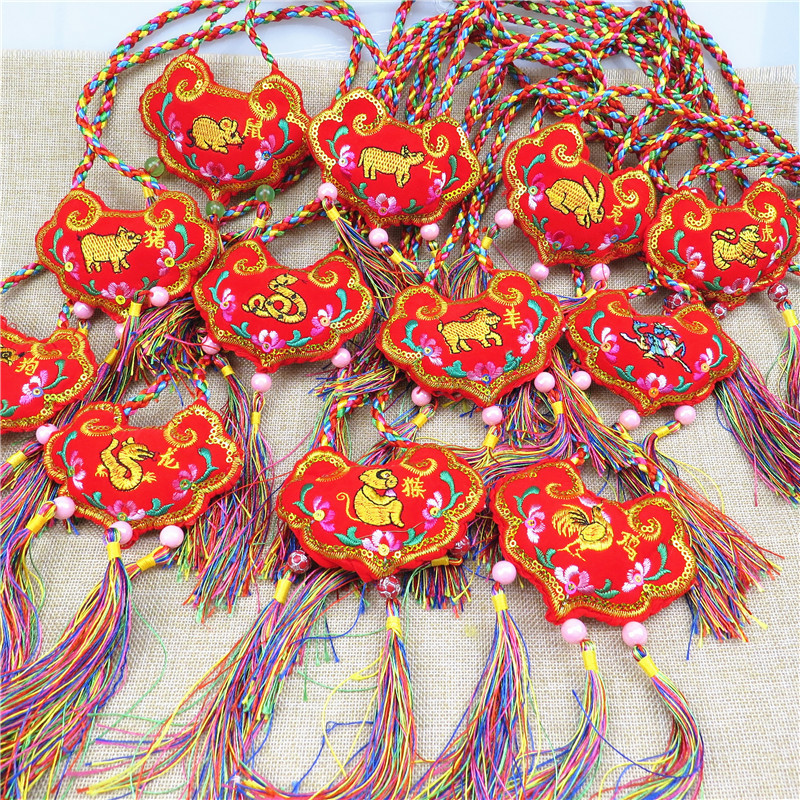端午节儿童挂脖香包中国传统十二生肖香囊五彩绳刺绣挂件荷包香袋