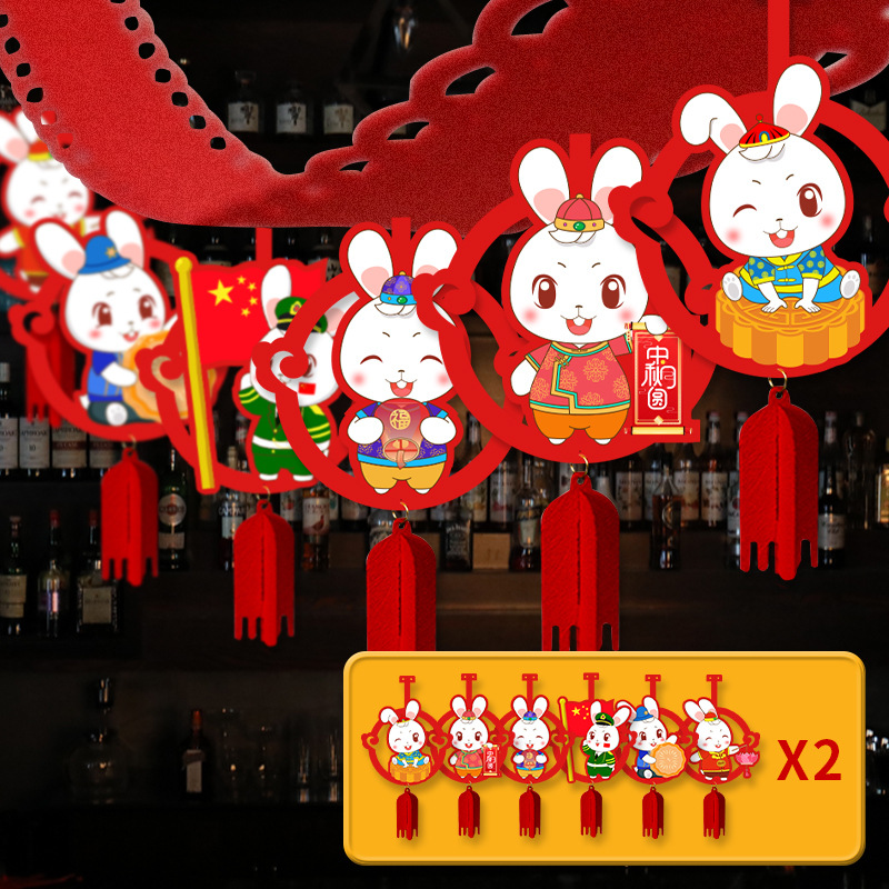 2021中秋国庆节毛毡布装饰拉花拉旗挂件商场店铺活动兔子装饰拉花
