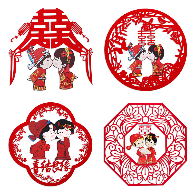 喜字红色卡通植绒45cm结婚婚庆用品婚房布置装饰喜字贴双喜批发