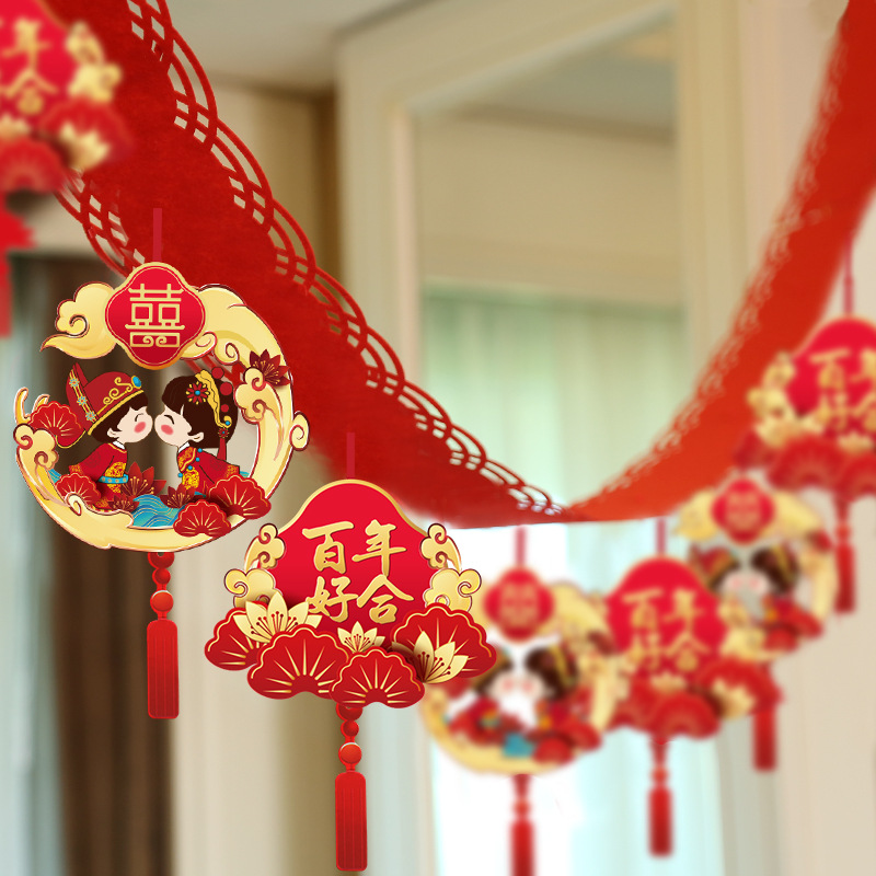 贡喜婚房布置植绒布喜字拉花装饰喜庆结婚挂饰挂件客厅卧室批发