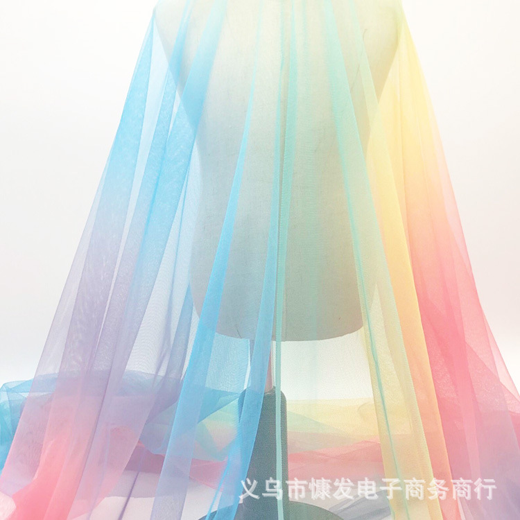 印花网纱渐变网布 网布数码印花 六角网眼布 现货彩虹印花面料