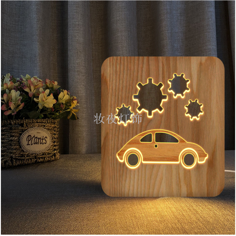 跨境汽车实木雕刻 usb新奇特电子礼品 新款木头灯