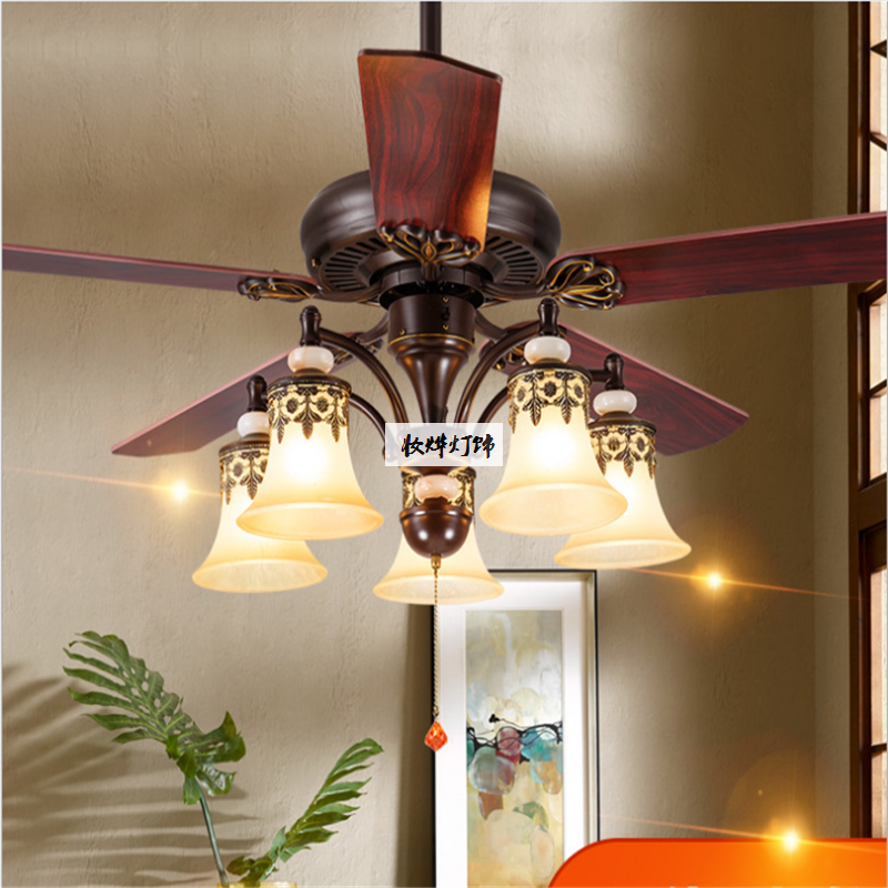 美式电风扇灯吊扇仿古客厅卧室书房风扇吊灯带灯餐厅装饰吊扇
