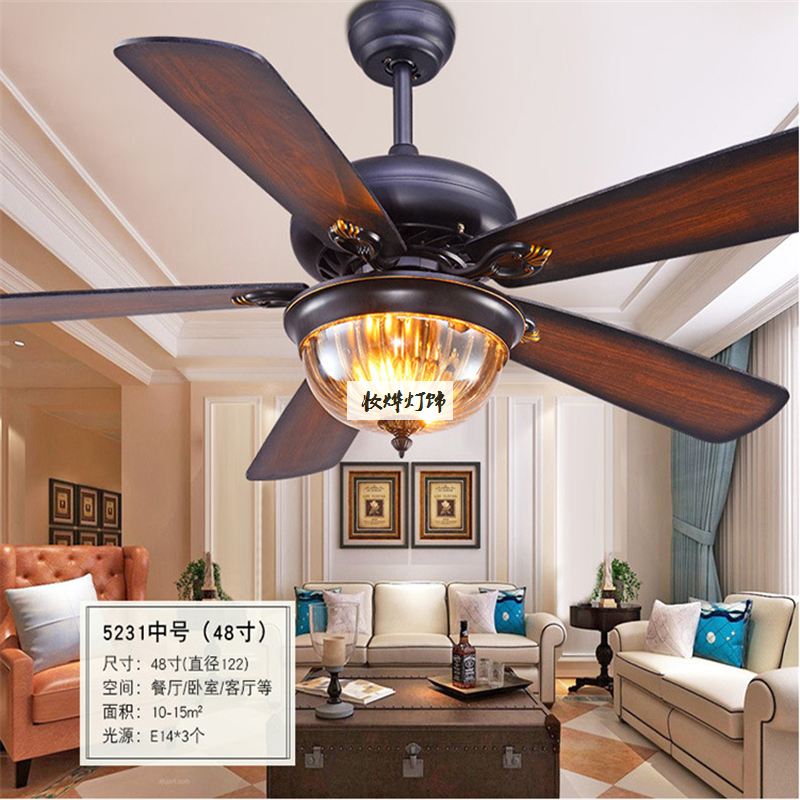 餐厅吊扇灯 客厅美式复古遥控风扇灯 仿古木叶52寸电风扇吊灯