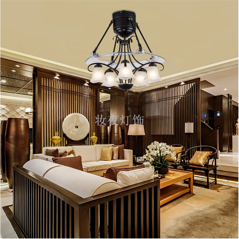 美式客厅卧室马卡龙吊扇灯创意餐厅咖啡厅吧台遥控风扇灯