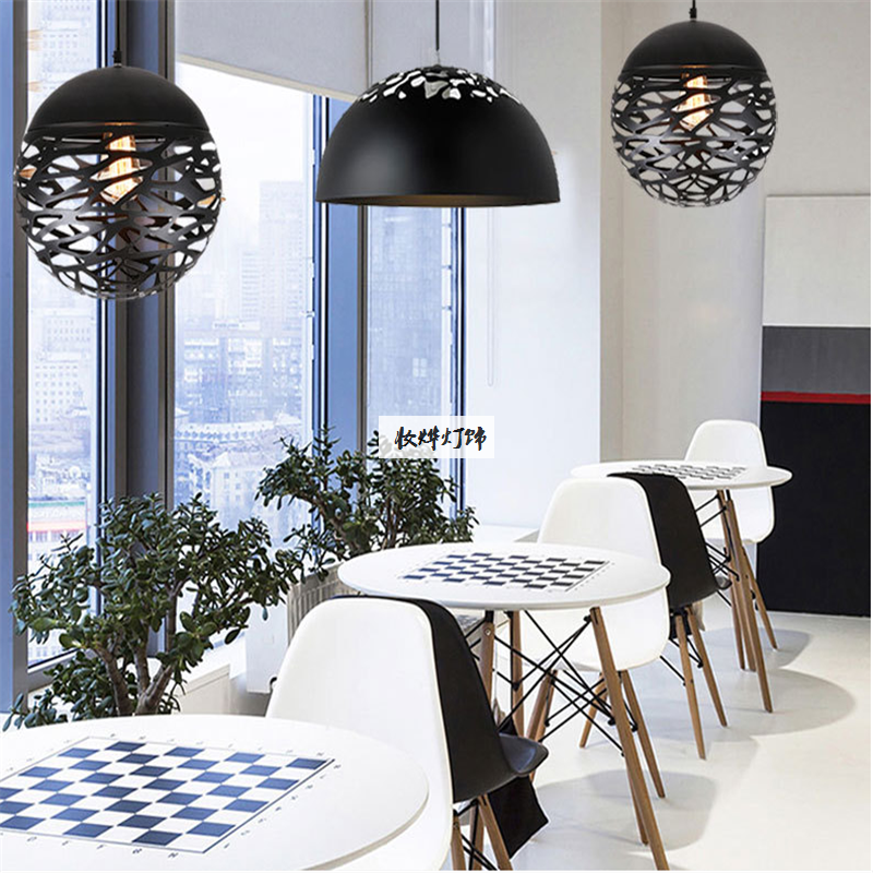北欧现代创意半圆球形铁艺吊灯咖啡餐厅客厅吧台镂空雕花灯饰