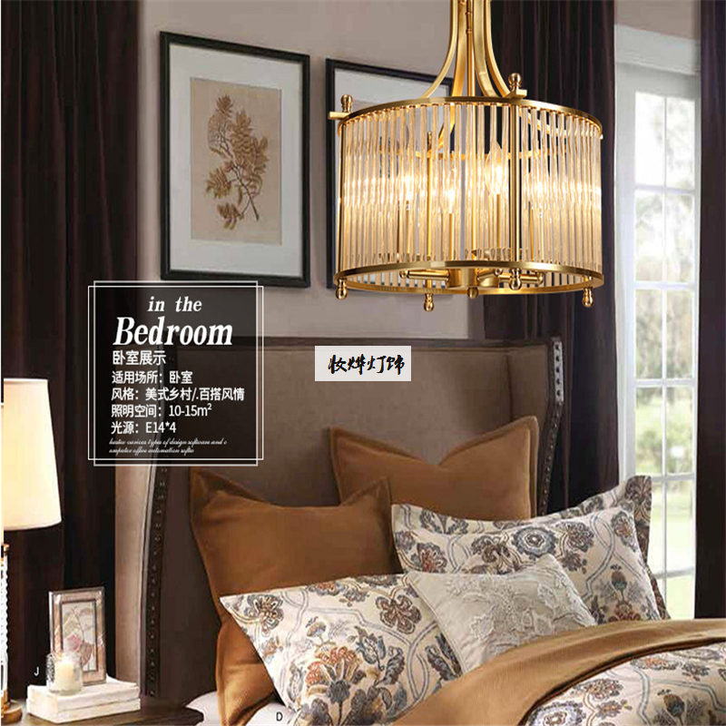 美式全铜吊灯简约餐厅灯卧室灯书房灯温馨全铜玻璃吊灯具