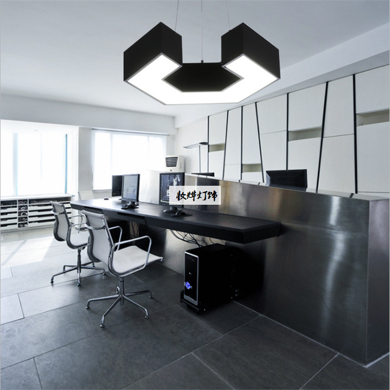 现代简约吊灯办公室灯餐厅异形铁艺创意个性六边形环工业网咖灯