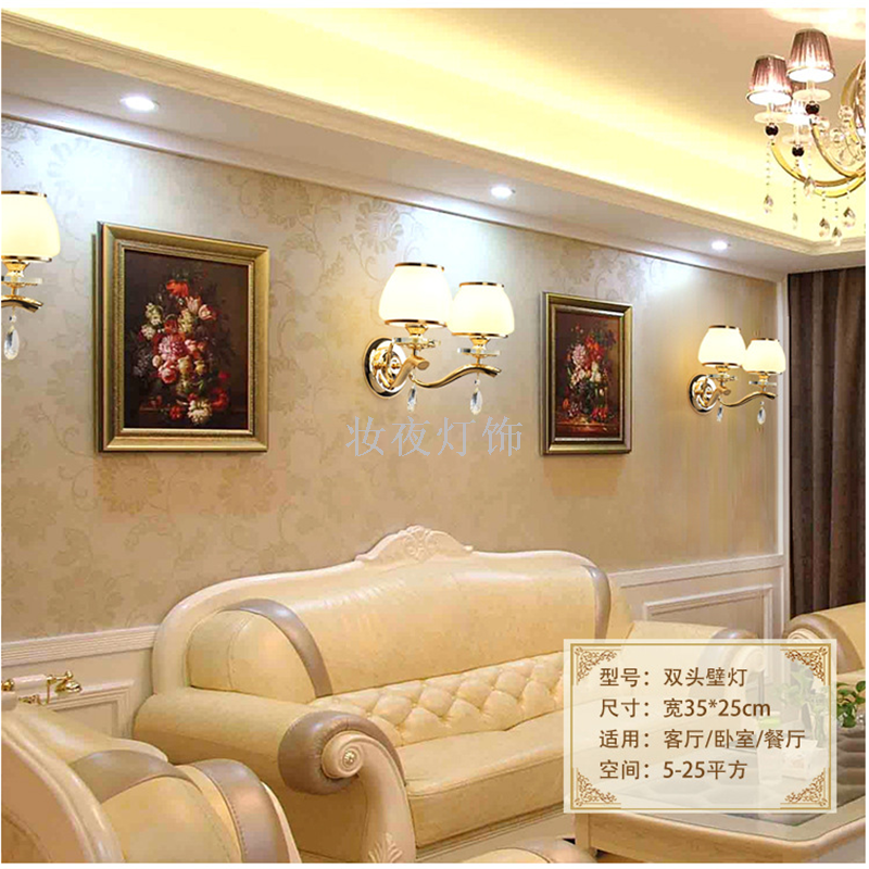 欧式客厅卧室床头电视柜壁灯 简约个性LED玻璃水晶铁艺壁灯过道灯
