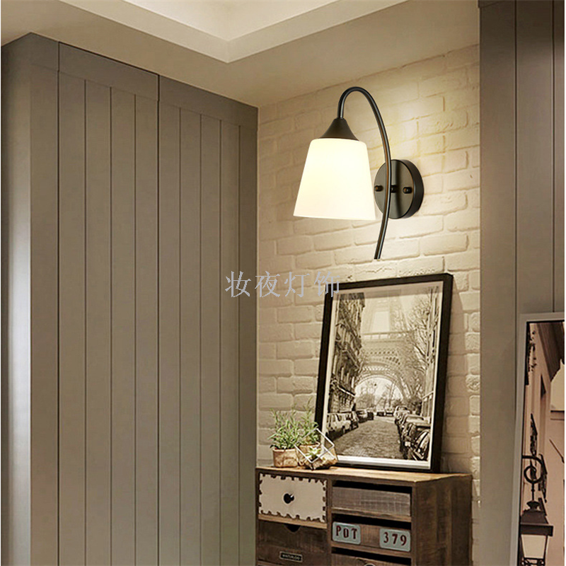 新款欧式卧室壁灯美式铁艺客厅过道走廊壁灯现代酒店客房床头壁灯