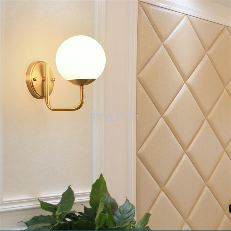 后现代创意全铜客厅壁灯卧室床头灯设计师样板房单头球形北欧壁灯