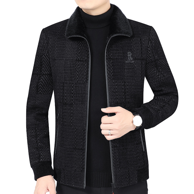 春秋冬季格子外套男装休闲夹克翻领仿水貂毛领中青年爸爸2色选
