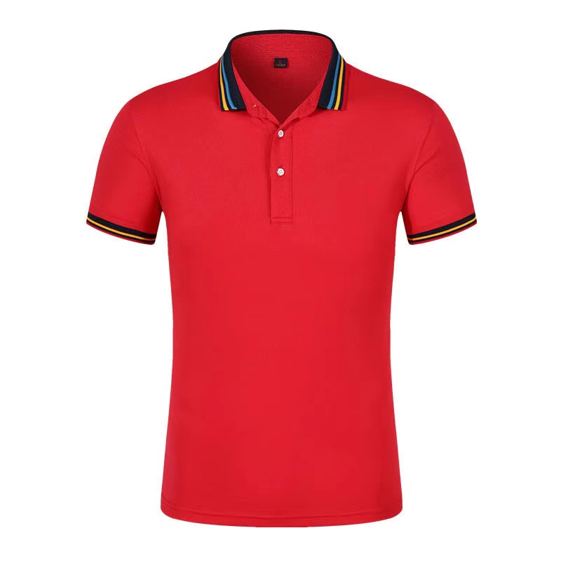 定制款珠地布棉透气吸汗速干翻领高尔夫球服35支彩虹背短袖