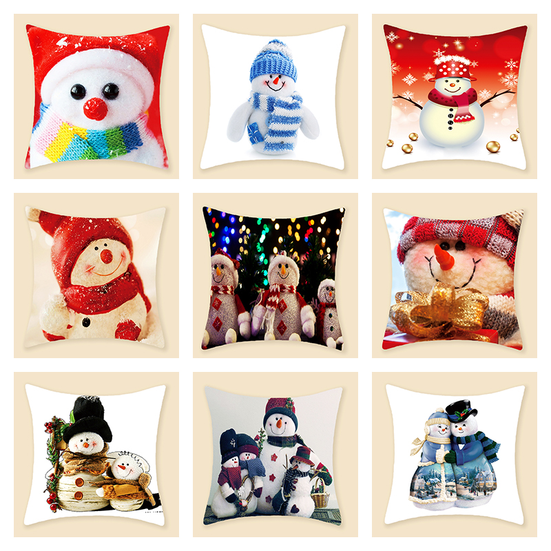2021新款北欧圣诞节抱枕案卡通布偶雪人系列短毛绒家具沙发靠垫套