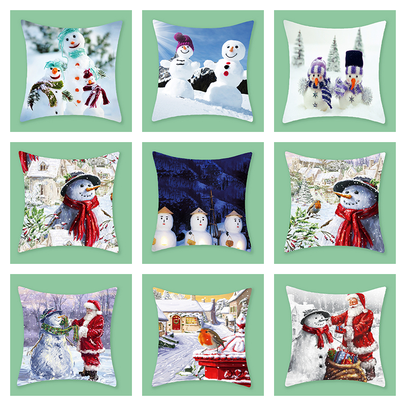 2021新款北欧圣诞节抱枕卡通雪人系列短毛绒家具沙发靠垫套批发