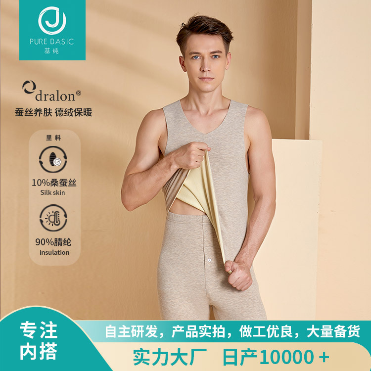 2021蚕丝德绒保暖裤冬季加厚自发热发暖保暖打底背心随心裁男士