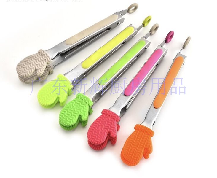 厂家直销不锈钢食物夹硅胶食物夹防烫烧烤夹面包夹多功能自助餐夹