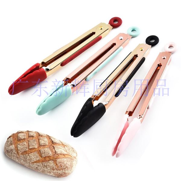 厂家直销镀金食物夹硅胶食物夹防烫烧烤夹面包夹多功能自助餐夹