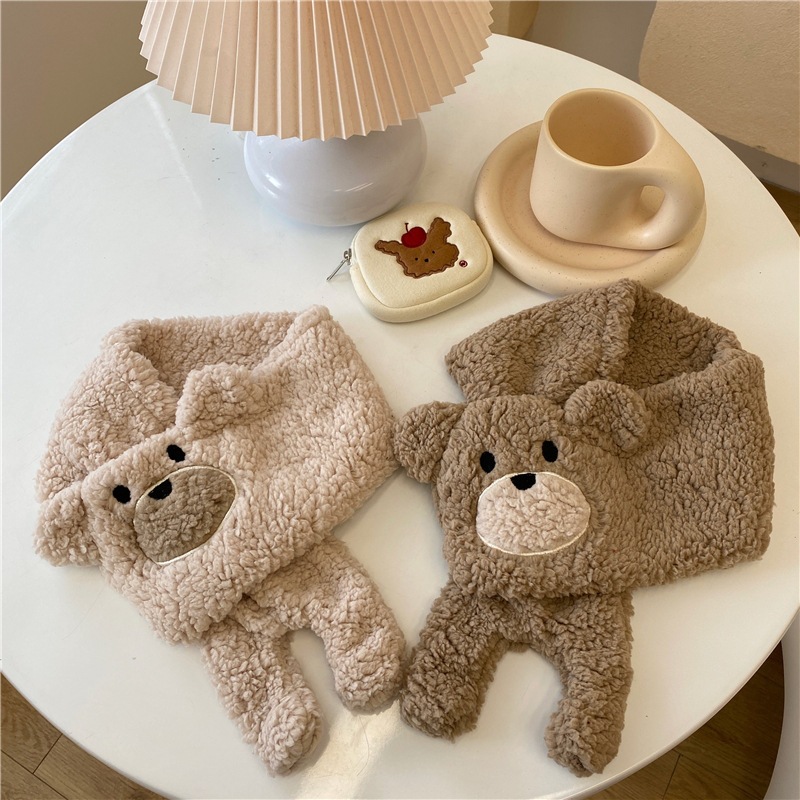 厂家直销可爱立体小熊毛绒围脖学生秋冬羊羔绒保暖围巾女