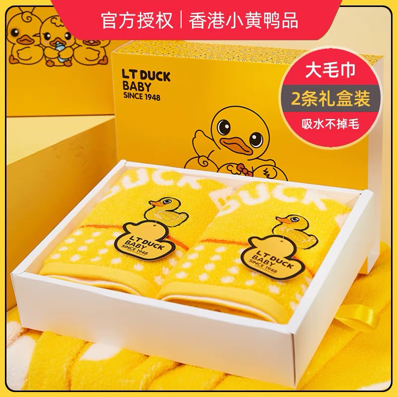 LTDUCK小黄鸭2条毛巾套礼盒装家用纯棉吸水男女冬季天儿童专用