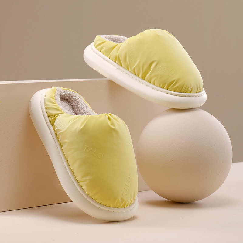 菠萝包羽绒防水棉拖鞋女冬季厚软底踩屎感情侣家居家用保暖棉鞋男