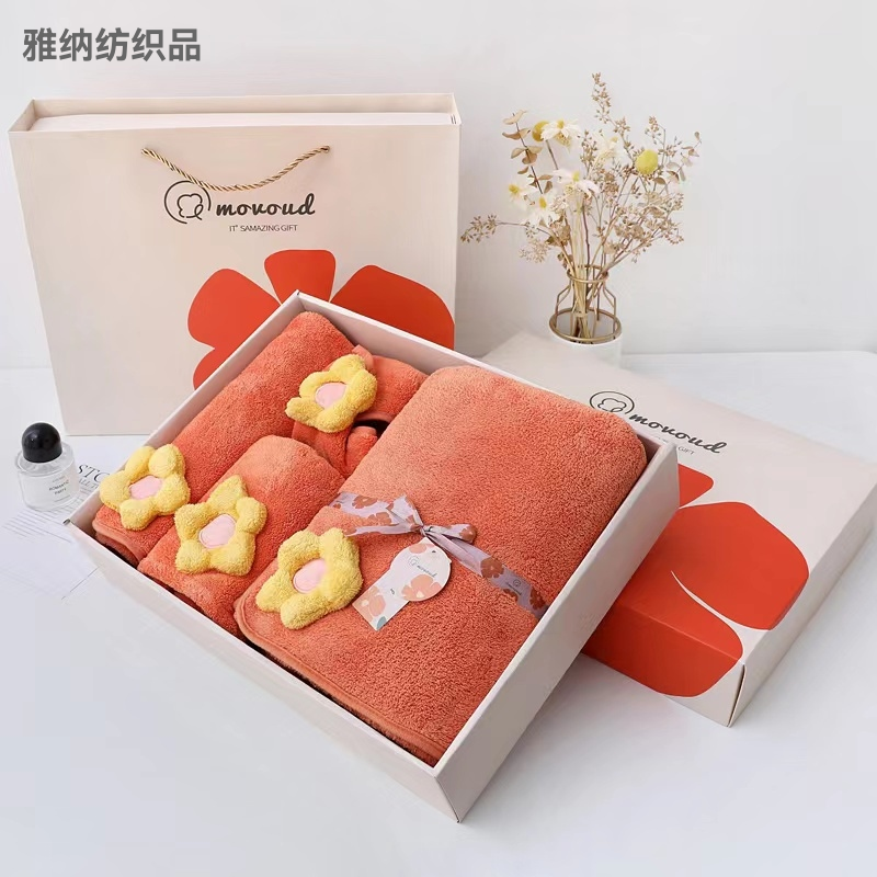 义乌好货珊瑚绒毛巾浴巾擦手巾干发帽吸水不掉毛礼品套盒