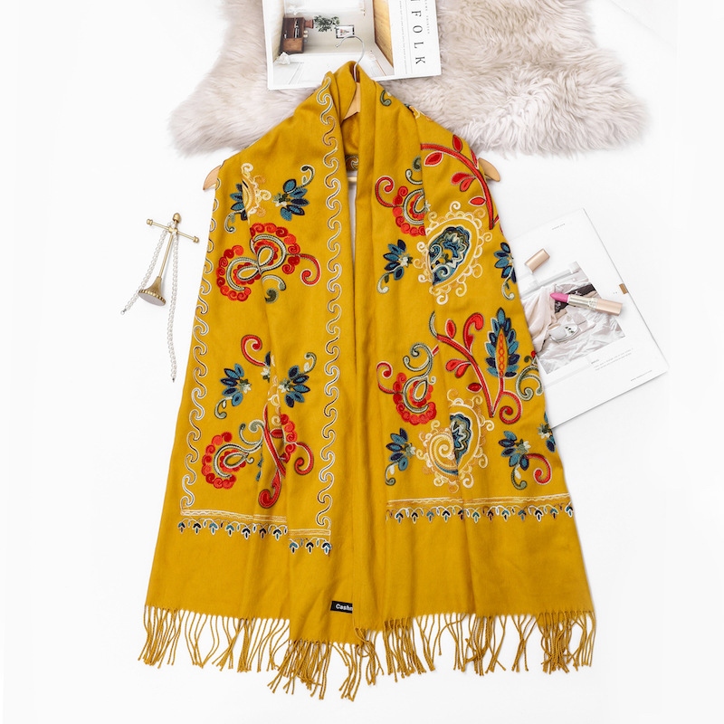 刺绣花腰果民族仿羊绒围巾加厚保暖披肩流苏西藏旅游云南