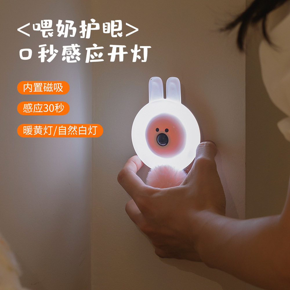 新款萌宠兔熊感应灯usb充电喂奶护眼led磁吸红外线智能人体感应灯