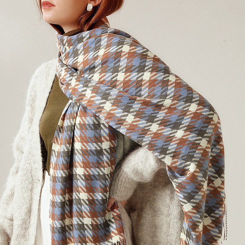 英伦学院街头风围巾女秋冬保暖2021新款跨境格子围巾披肩外搭批发