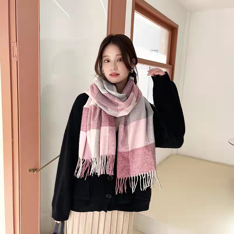 韩版秋冬新款格子可爱仿羊绒围巾校园风女生百搭保暖披肩围脖批发