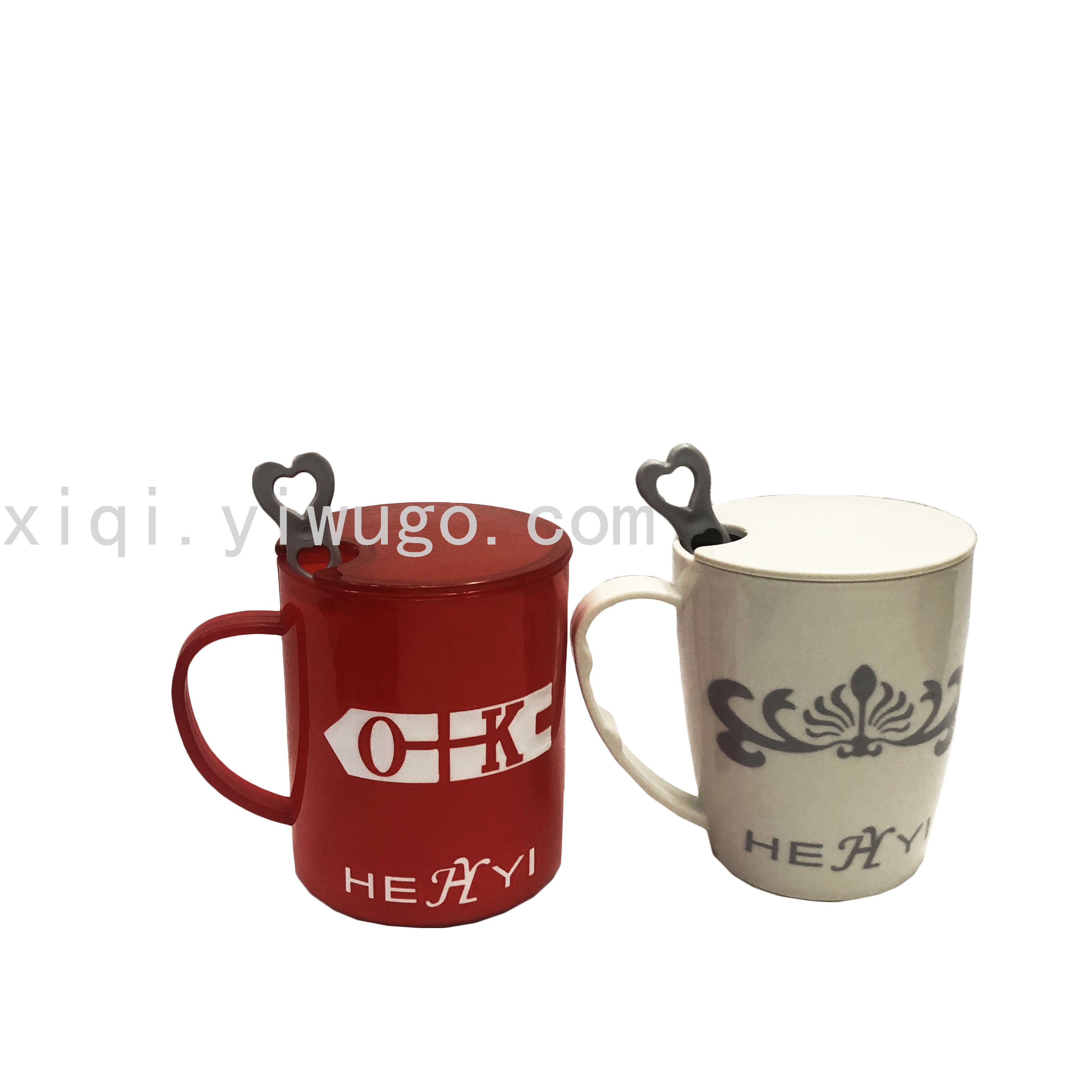 高级带柄双色O+K盖杯菊花带盖下午茶杯带勺子塑料咖啡杯RS-201552