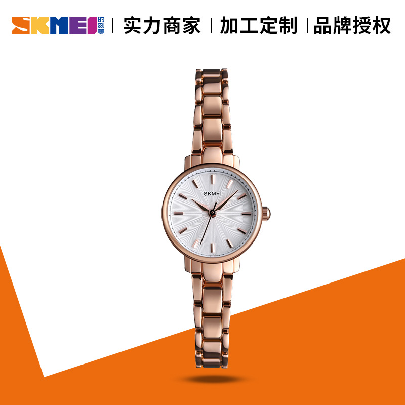 SKMEI2019年新款女式玫瑰金石英表 精致小巧商务时尚女生防水手表