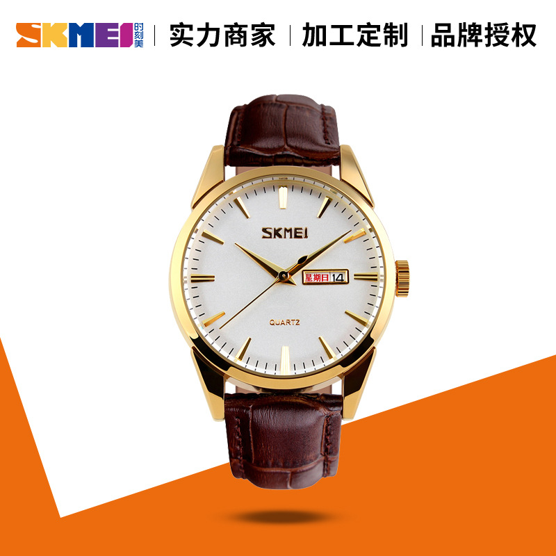 时刻美正品手表男士双日历防水商务皮带石英男表礼品手表批发9073