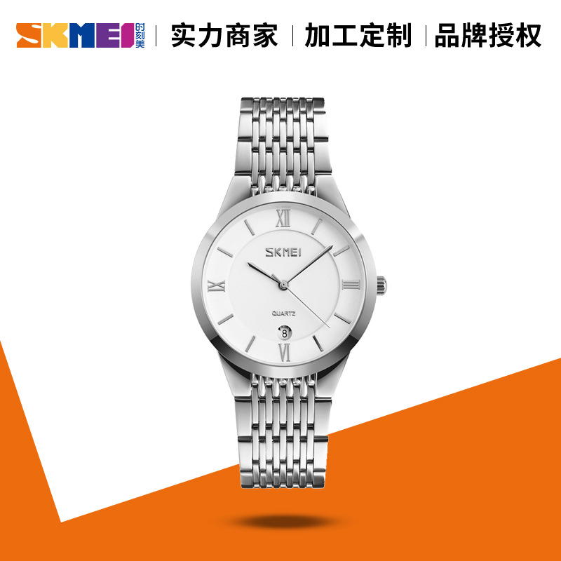 时刻美情侣款石英表时尚单历钢带女士腕表时装表防水简约情侣手表