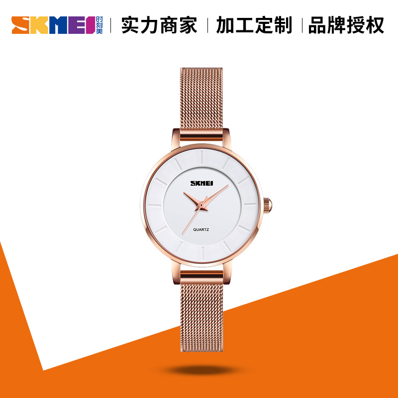 时刻美正品女士精美款时尚石英表 玫瑰金网带小表盘防水钢壳手表
