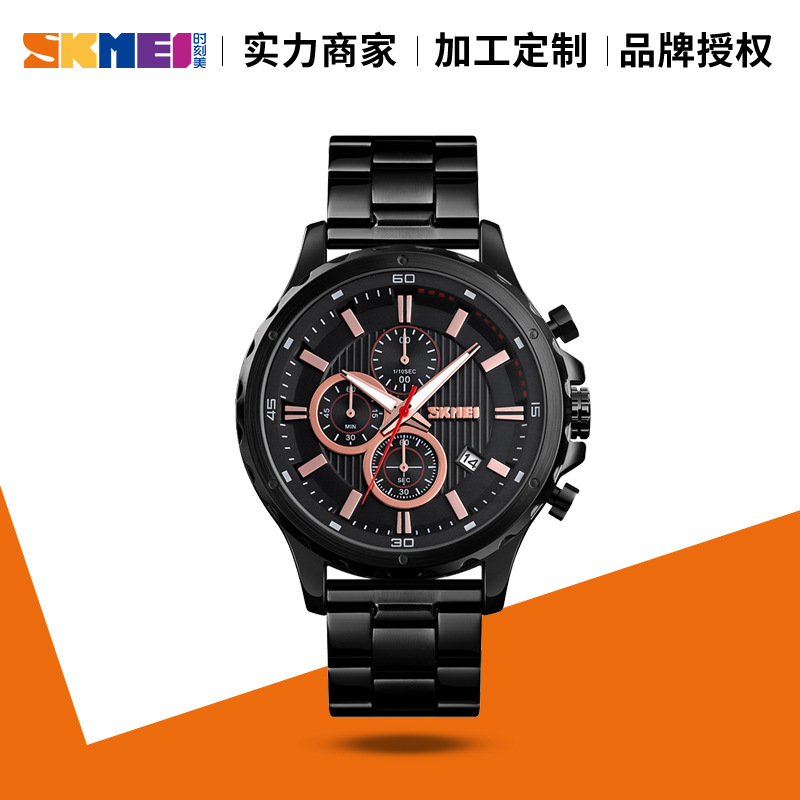 时刻美时尚运动大表盘男士石英表 产地货源多功能小三针钢带手表