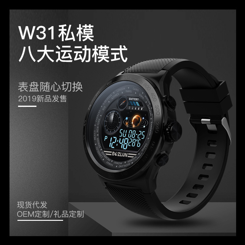 跨境货源W31彩屏运动手表 心率监测运动模式蓝牙提醒智能表盘手表